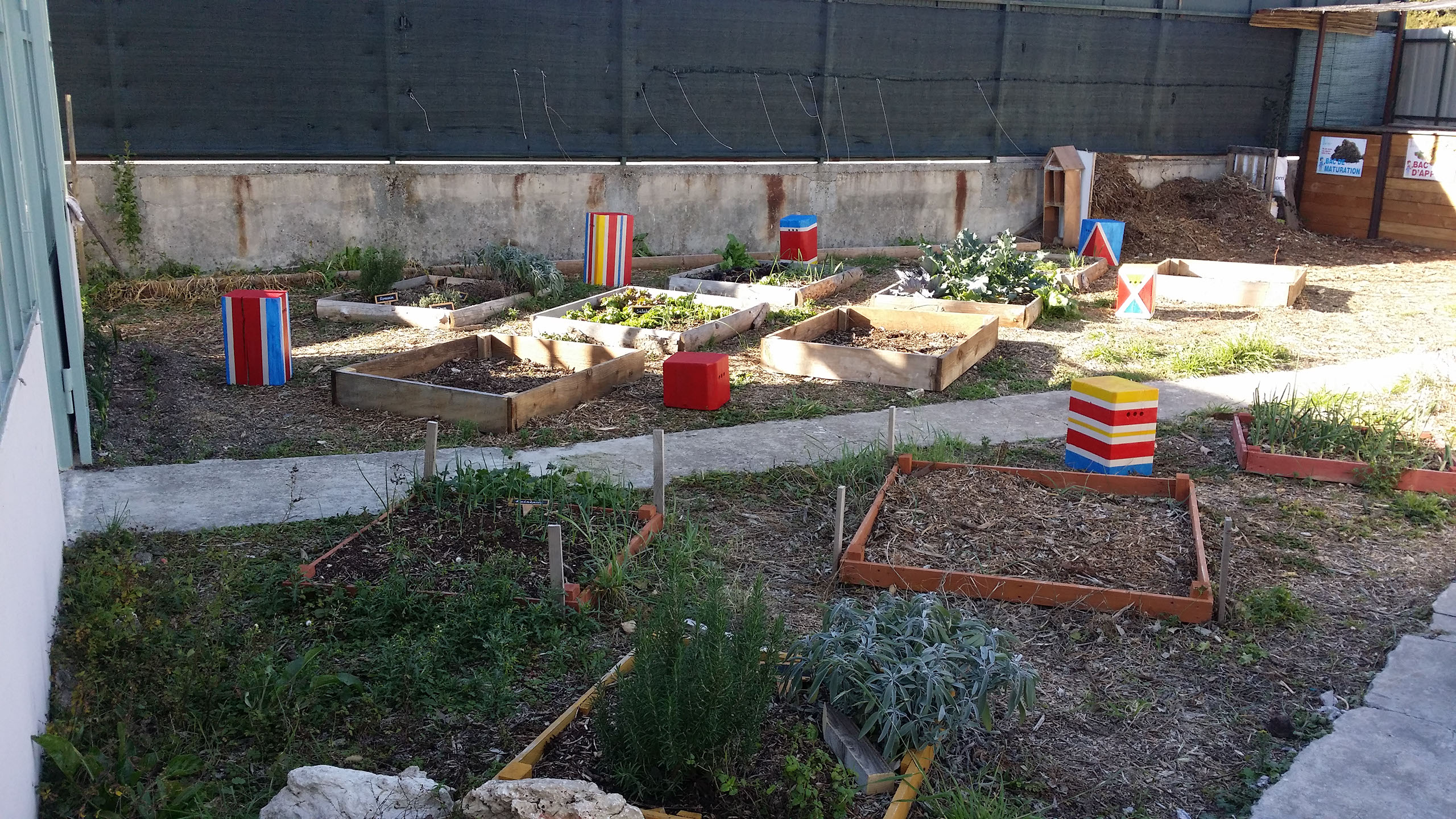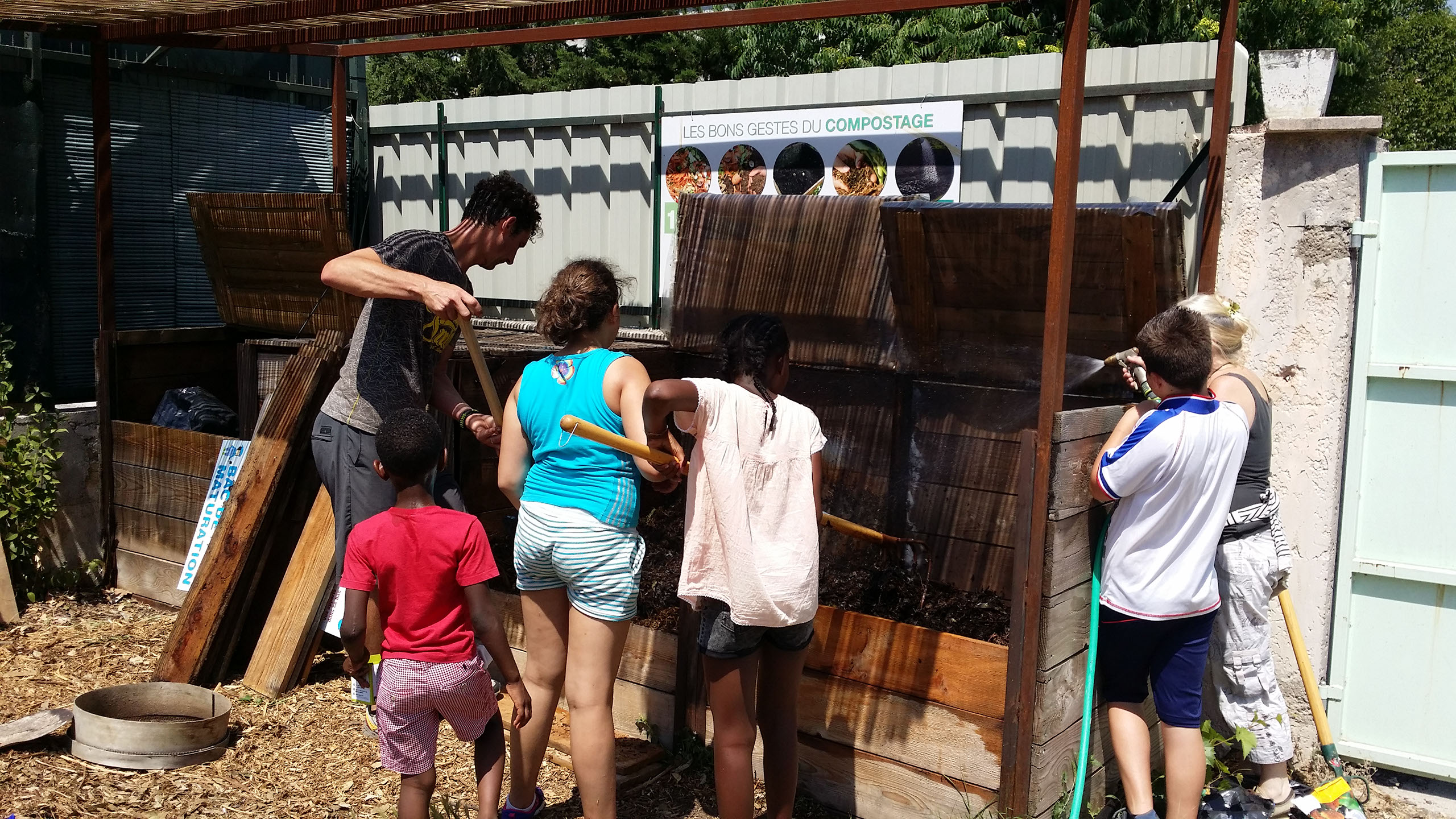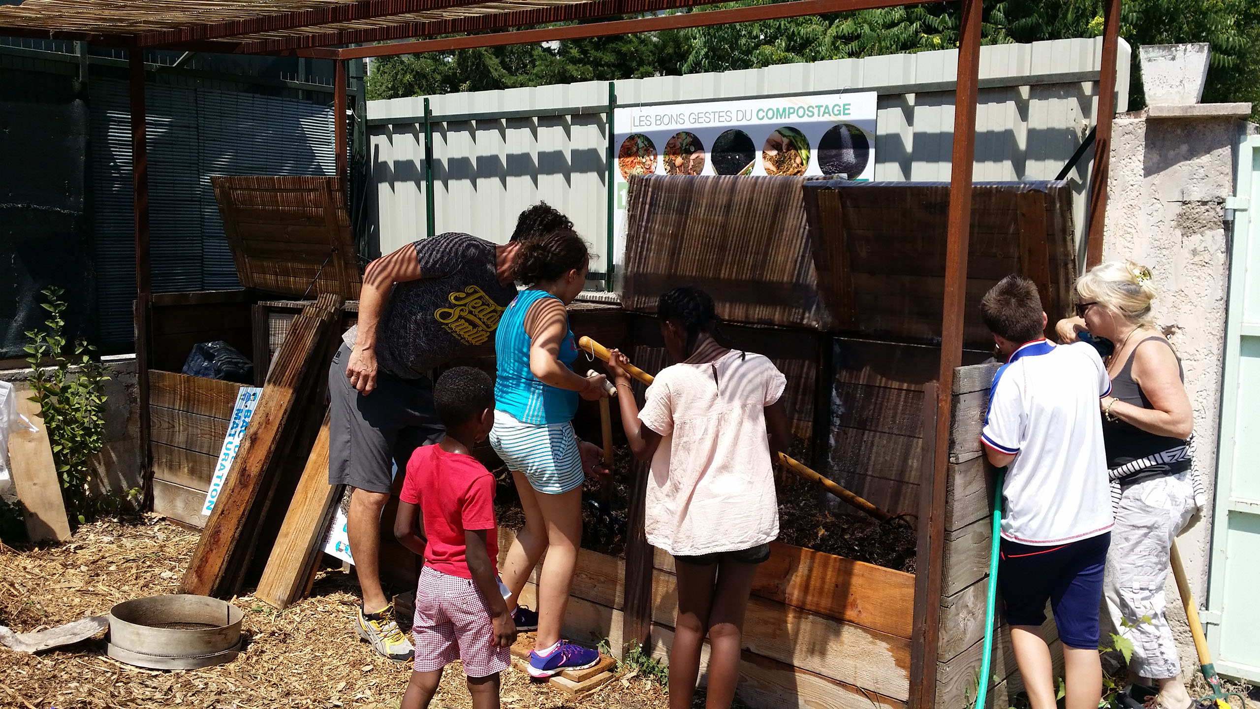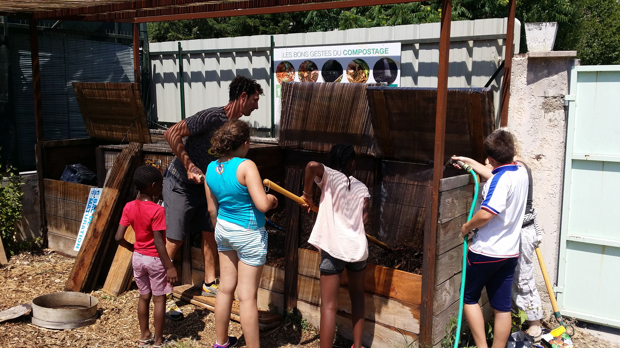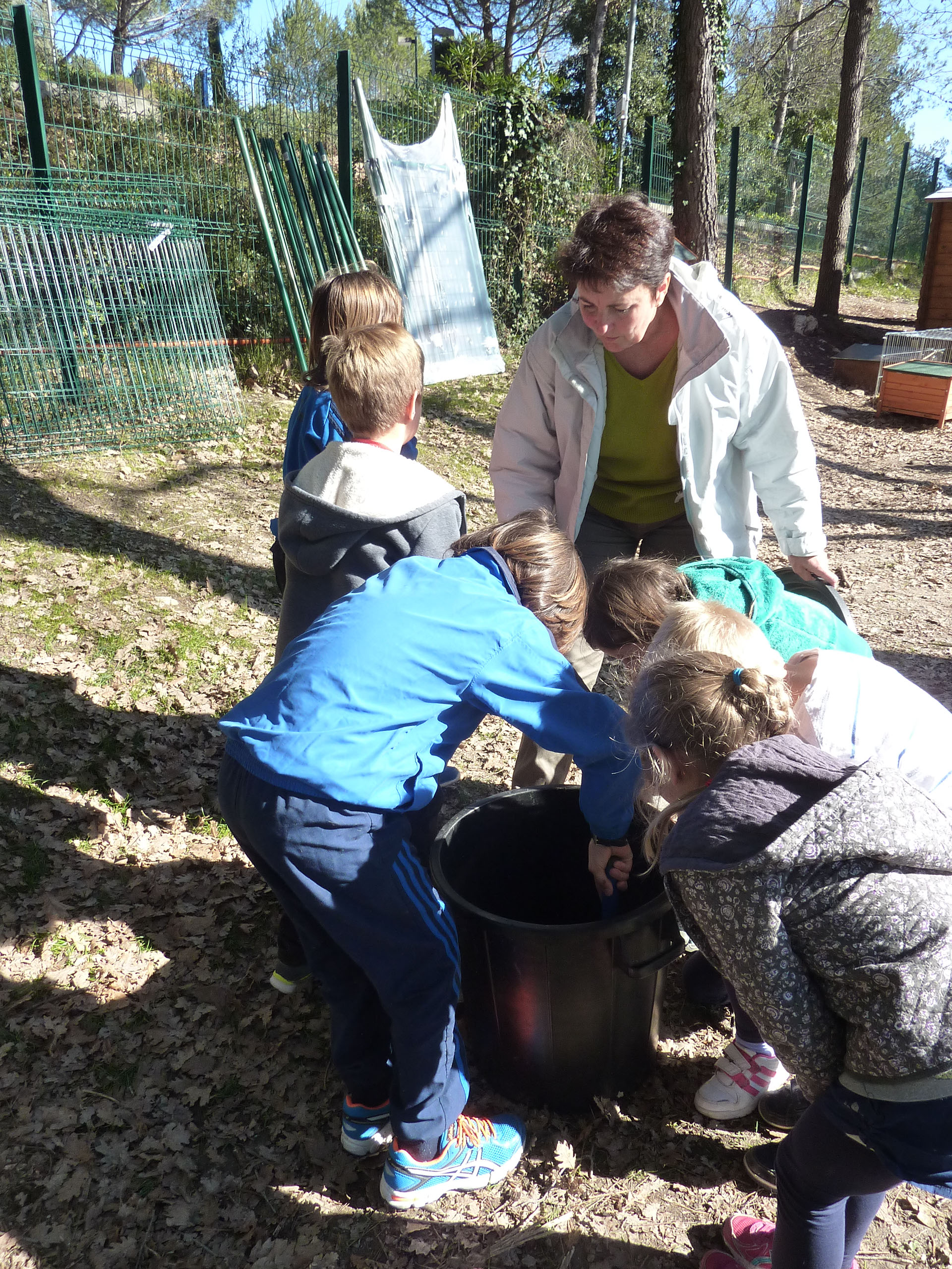 Installation de composteurs à l’école Montessori « Les Colibris » de Biot. Le tri des restes de repas est fait dès le plus jeune âge.